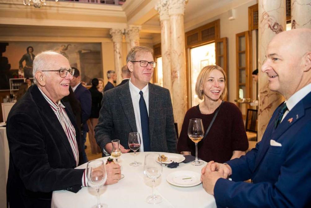После концерта состоялся праздничный прием, организованный «Фондом Инессы Галанте» в сотрудничестве с Американской торговой палатой в Латвии (AmCham Latvia). В мероприятии приняли участие председатель Рижской Думы Виестурс Клейнбергс (на снимке), заместитель председателя Рижской Думы Эдвардс Ратниекс, глава Римско-католической Церкви Латвии архиепископ-митрополит Збигнев Станкевич, посол США в Латвии Кристофер Робинсон (Christopher Robinson), посол Объединенных Арабских Эмиратов в Латвии Нура Джума (Noora Mohammed A. Juma), представители посольств Австрии, Италии, Эстонии и других государств, бывший советник экс-президента Латвии Вайры Вике-Фрейберги по экономическим вопросам Сол Норман Букинголтс, президент Латвийской академии наук Ивар Калвиньш, президент Американской торговой палаты Джон Мартин Талли (John Martin Tully), главы и члены торговых палат Объединенных Арабских Эмиратов, Австрии, Польши, Литвы и Латвии, а также другие значимые представители деловых, культурных и общественных кругов Латвии и других стран.