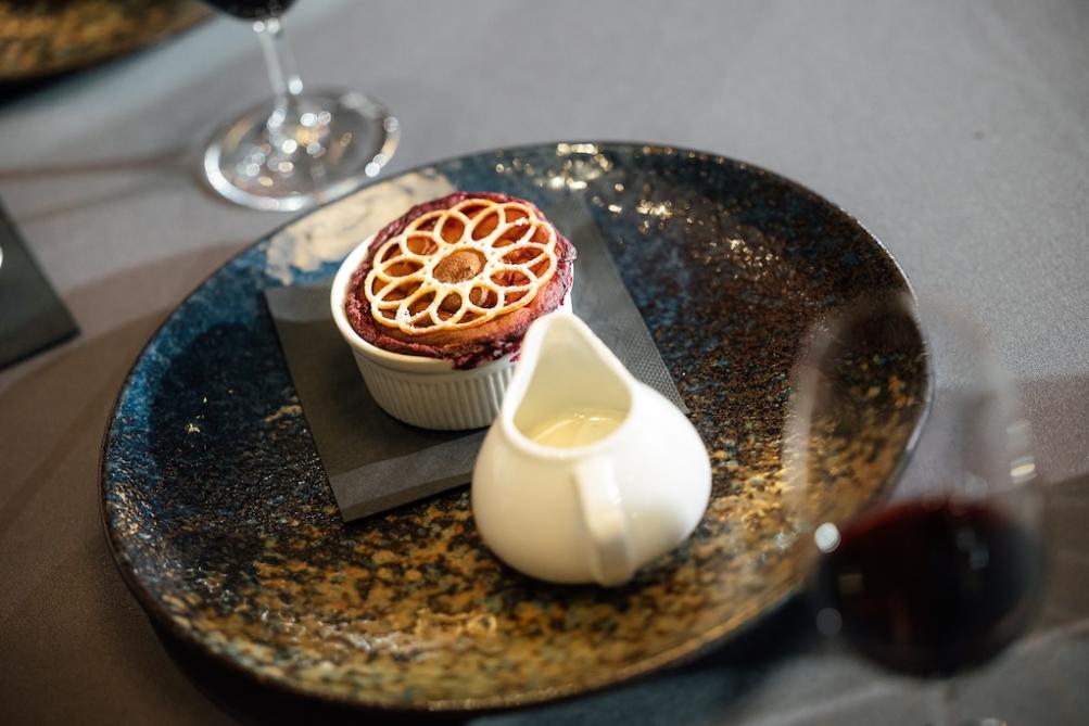 Команда представила смелый десерт из карамелизированного мороженого из топинамбура, чипсов из кожуры топинамбура, запечённого топинамбура и мусса из айвы, дополненных карамелью из жира оленины и маринованным топинамбуром. Подача сопровождалась сладким вином из Германии, региона Пфальц, Oliver Zeter Goldschatz TB. Команду на сцене представляли шеф-повар Юрис Дукальскис и Юрис Семёнов — лучший сомелье Латвии 2025 года.
