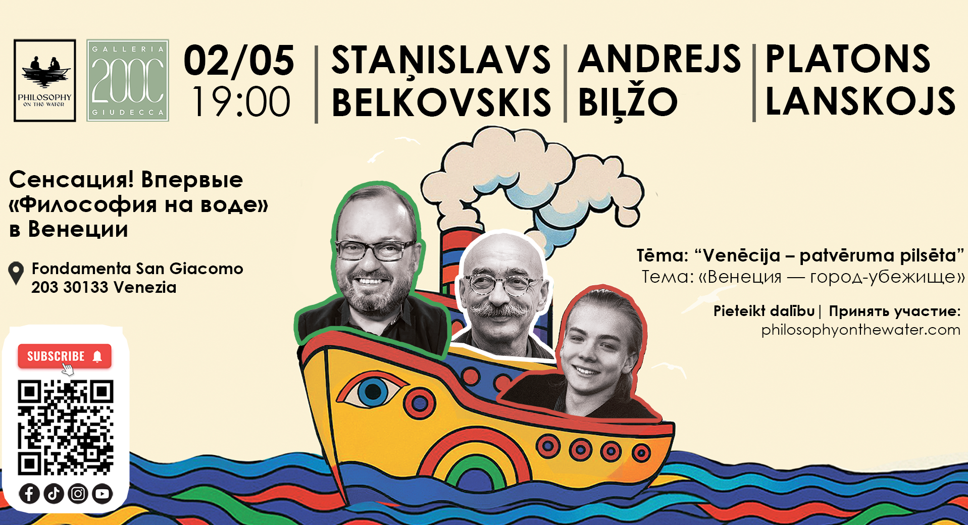 В этом году именно 2 мая 2026 года в 19:00 в камерной компании из 20 гостей на террасе художественной галереи с живописным видом — Galleria 200C Giudecca в Венеции ( Fondamenta San Giacomo 203 30133 Venezia) -- откроется новый сезон публичных диалогов важно и волнующей темой «Венеция — город-убежище». Опыты жизнестойкости в историях, размышлениях и наблюдениях Станислава Белковского, Андрея Бильжо и Платона Ланского.