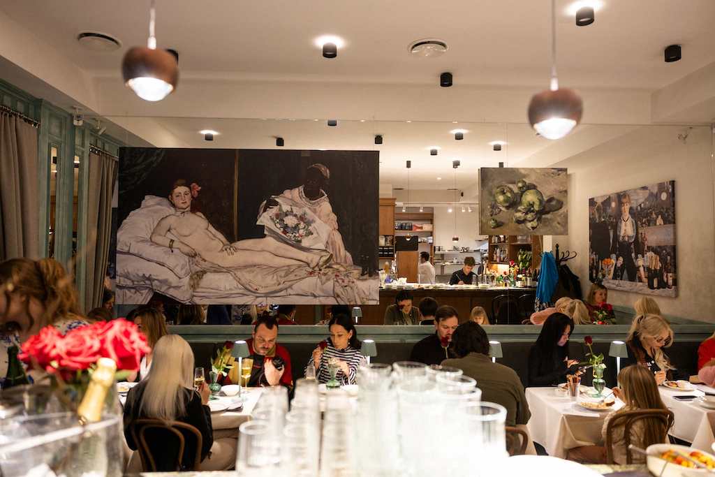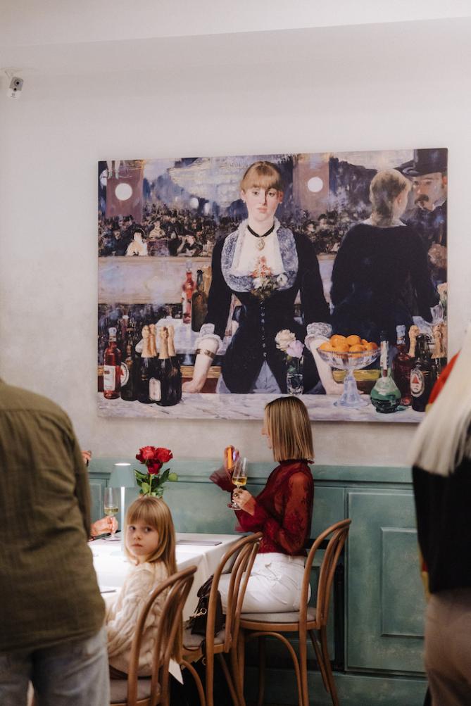 Интерьер MaMà Bistro вдохновлен буржуазным очарованием классического французского бистро с легкими ностальгическими отсылками. Стены оформлены репродукциями картин известных французских импрессионистов. Проект воплотил дуэт дизайнеров -- Алвис и Ингуна Земзари.